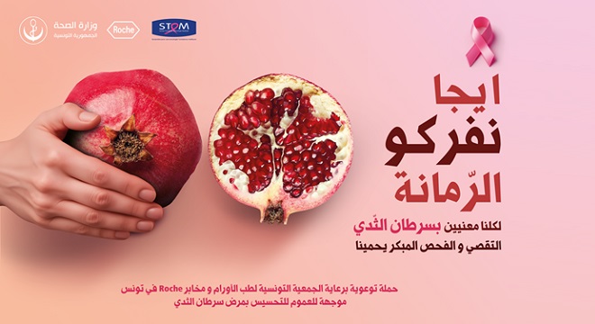 Cette année, Roche Tunisie SA, en partenariat avec la Société Tunisienne d’Oncologie Médicale (STOM) et le Ministère de la Santé, s’engage dans une nouvelle campagne nationale de sensibilisation : « إيجا نفركو الرمّانة » ,Ouvrons la grenade, ouvrons le dialogue.